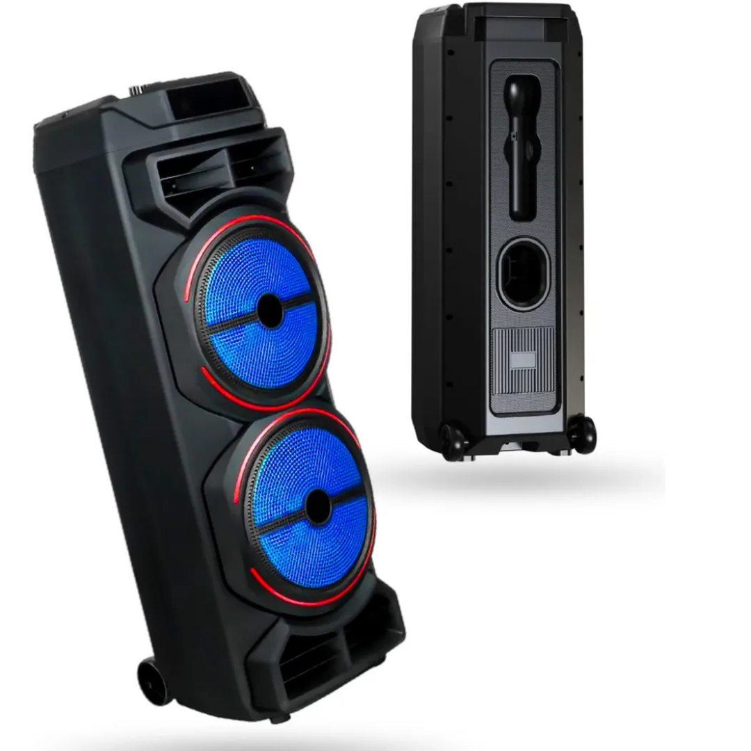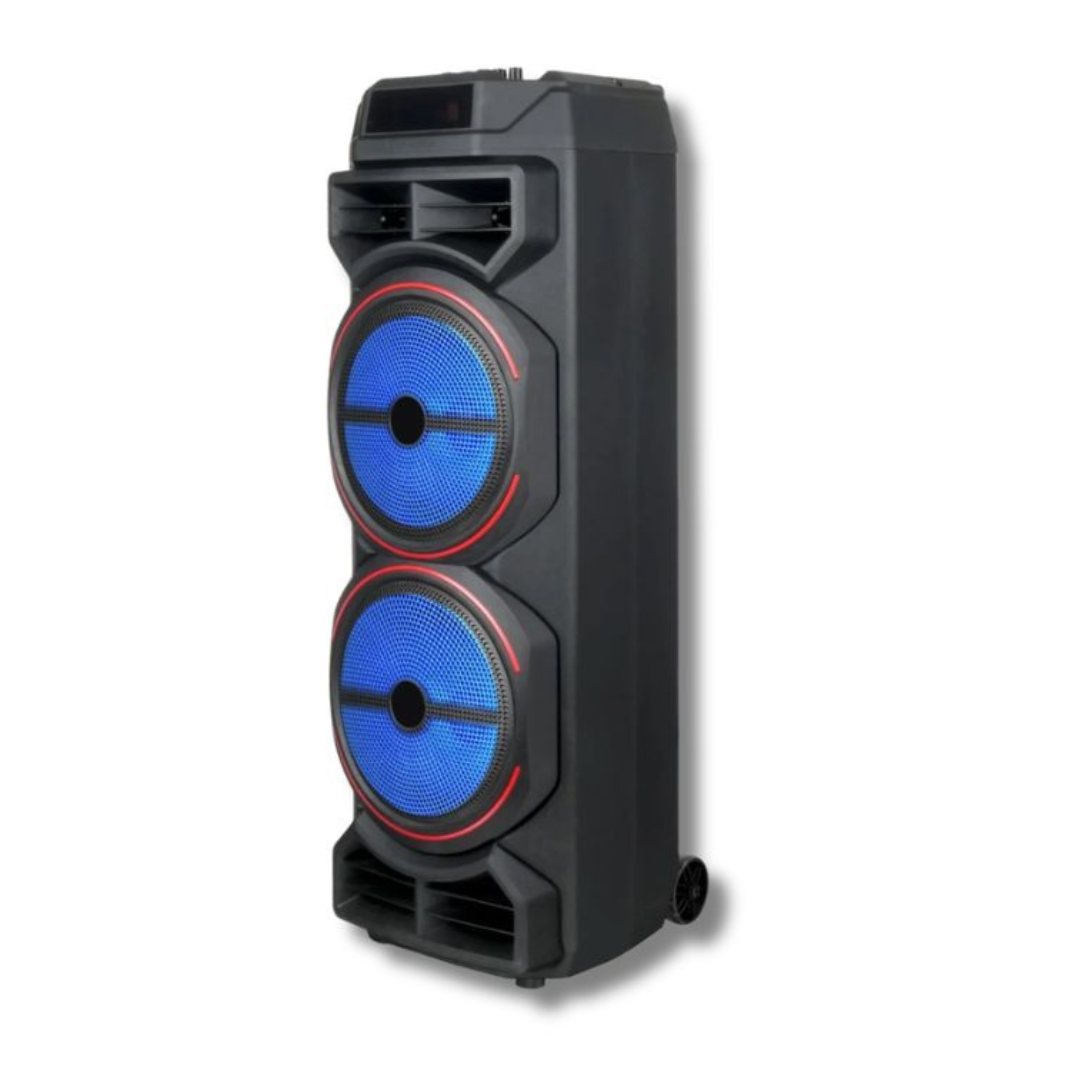 La Gedi-G GD-2885 ofrece un sonido potente, claro y envolvente gracias a su sistema doble woofer de 8” y una potencia máxima de 10.000W, ideal para fiestas, reuniones y eventos sociales.