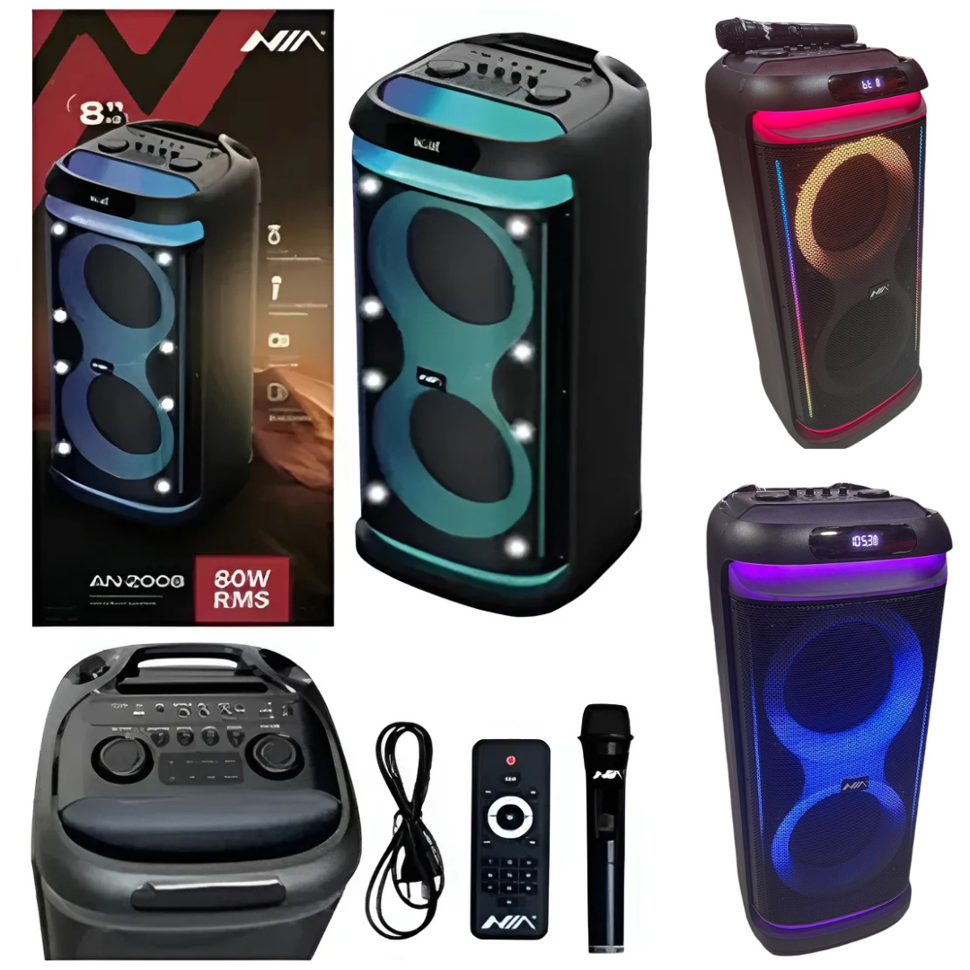 🎶 Potencia real 80W RMS con parlantes 2 x 8” + 1 tweeter, ideal para fiestas, reuniones y eventos.