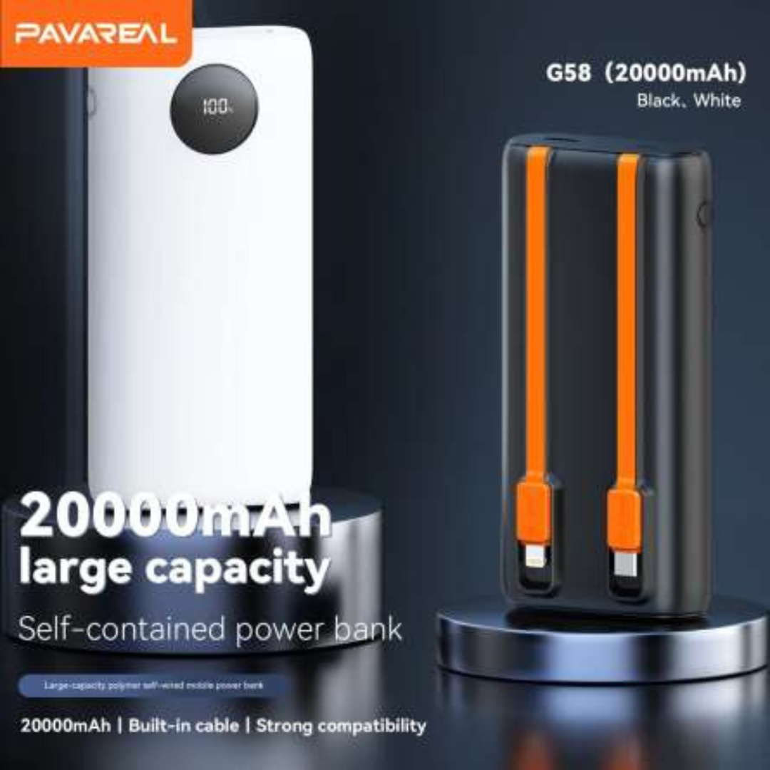 Mantén tus dispositivos siempre cargados con el Power Bank Pavareal de 20.000 mAh, diseñado para acompañarte en viajes, trabajo, estudio o emergencias. Su tamaño compacto y múltiples puertos lo convierten en una solución práctica y segura para cargar varios dispositivos al mismo tiempo.